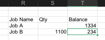 Visually, you can already tell something was off. The balance of job B is clearly incorrect: 1,234MT (balance of job A) minus 1,200MT (quantity supplied for job B) will give you 34MT. And not 1,034MT.