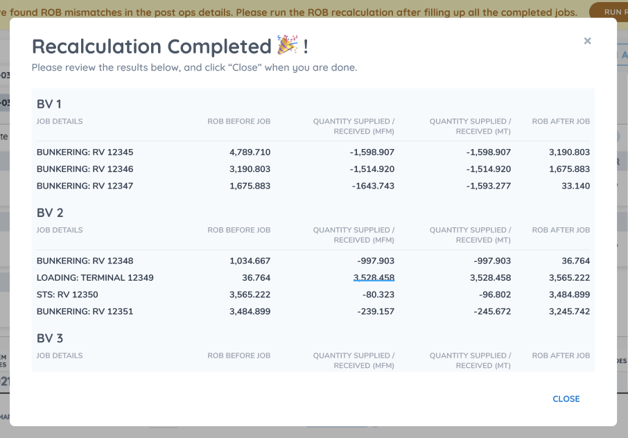 By grouping the jobs in chronologically for each BVs, the user can easily review the bunker balance for each of them.