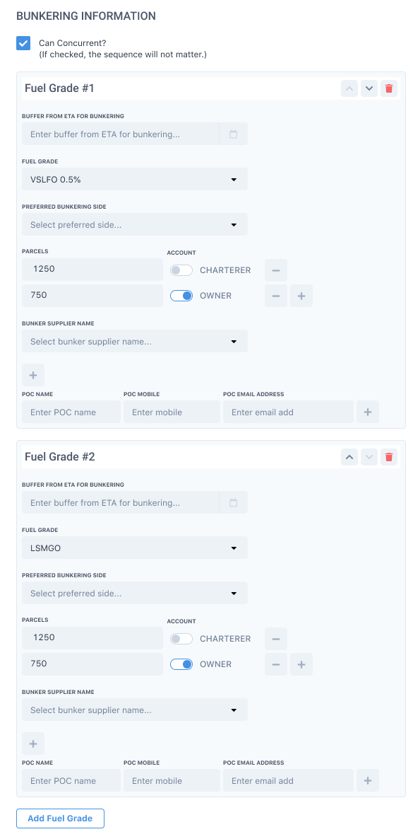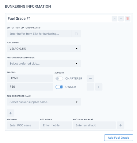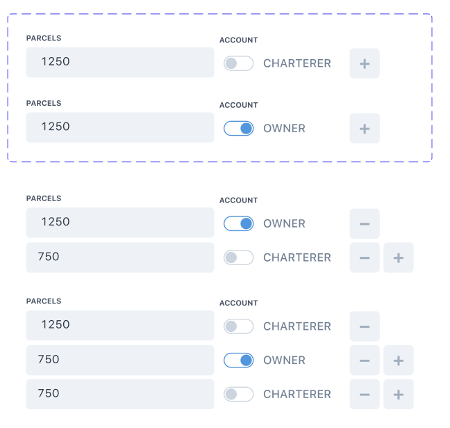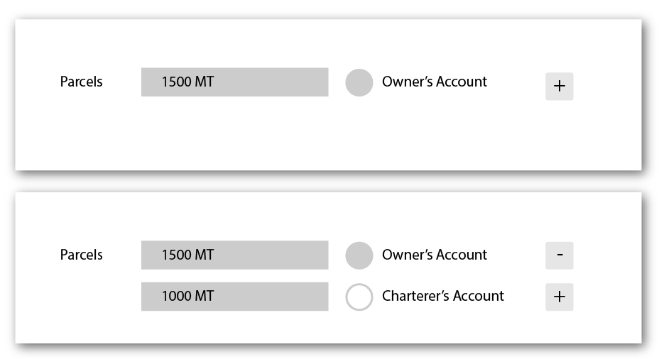 Each parcel can belong to either the Charterer or Owner, and we need to represent that as an option for the user to select.