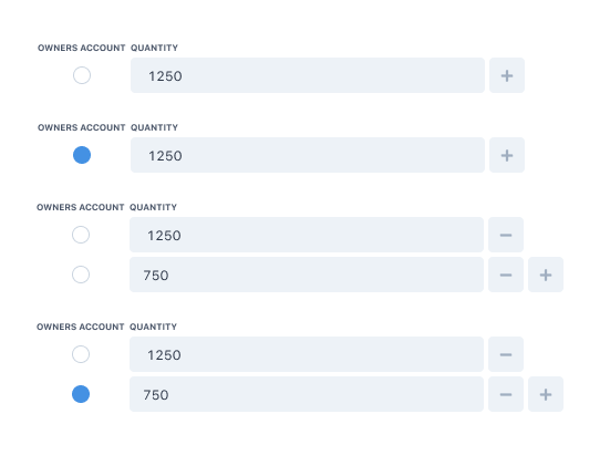 Now each quantity row is called Parcels, and instead of having the radio title on the top, it's now on the right. By selecting the relevant radio button, the title will update to reflect parcel's account.