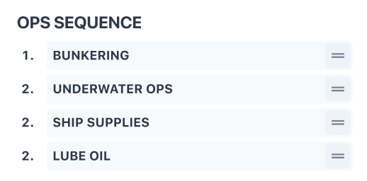 Any of the 4 operation types could commence first, but usually it would be the bunkering. The clients need to access it easily at the job list page, and define the sequence at the job details page.